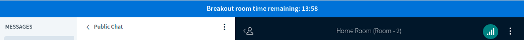 When you enter the breakout room you will see time left until the breakout room closes displayed on the top of the window. Other functionalities are similar to the main room (recording is not available though).