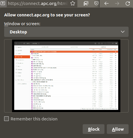 When the browser's notification pops up select the screen you would like to share: